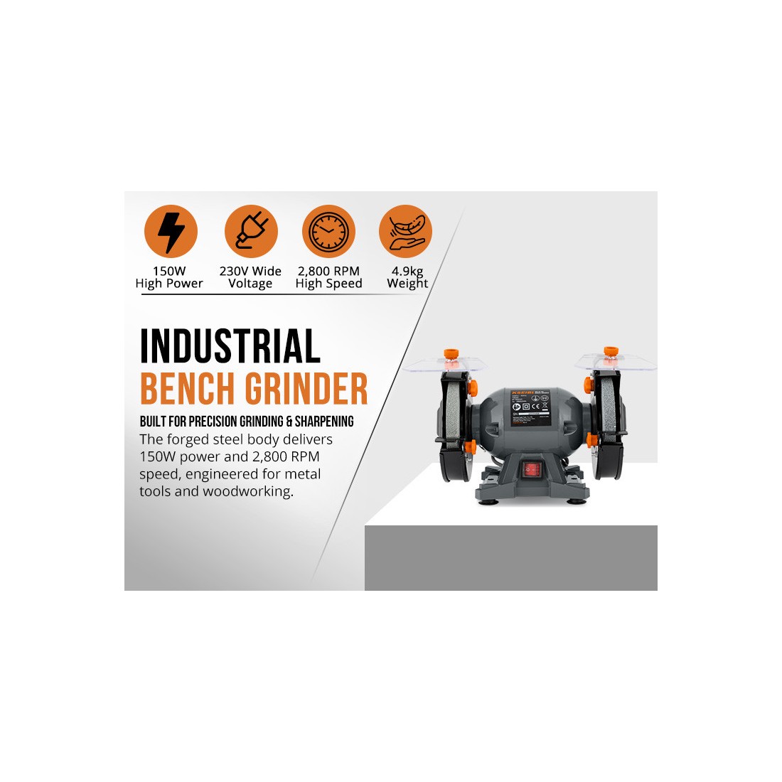 高效能150瓦电机,提供强劲动力,适用于多种磨削任务。