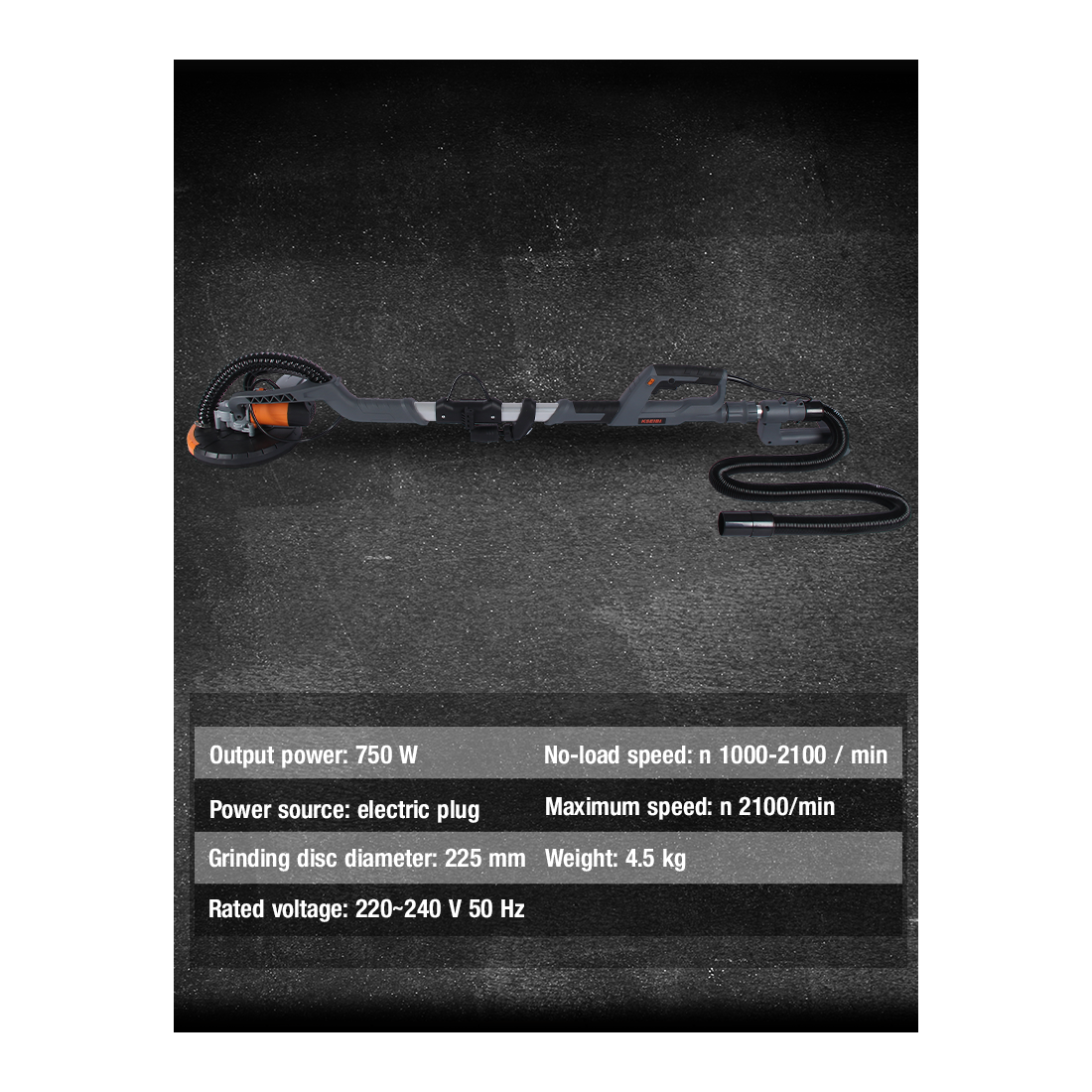 KDS 75-225V干式墙砂光机配备750W大功率电机,提供高效砂光性能。