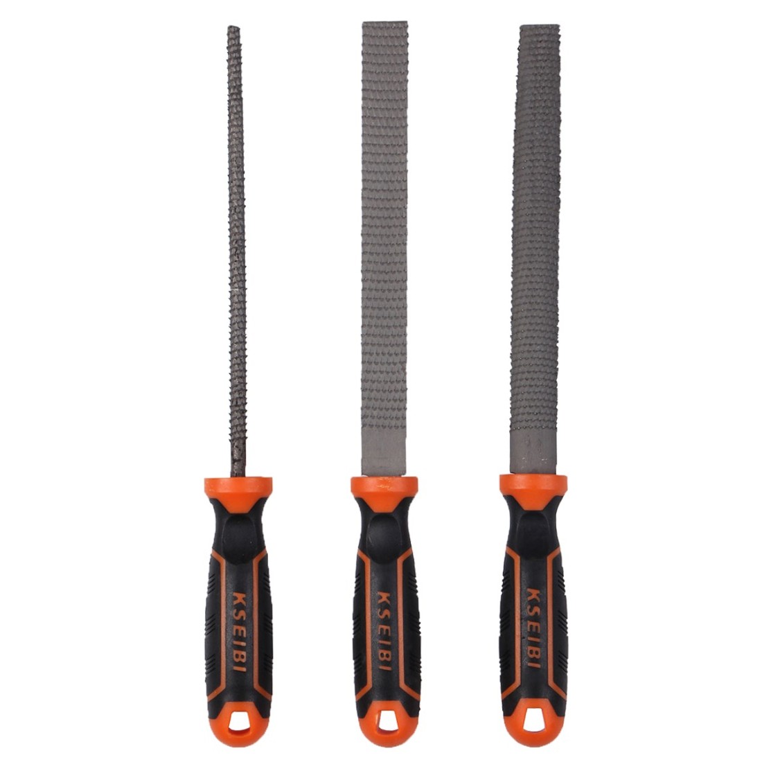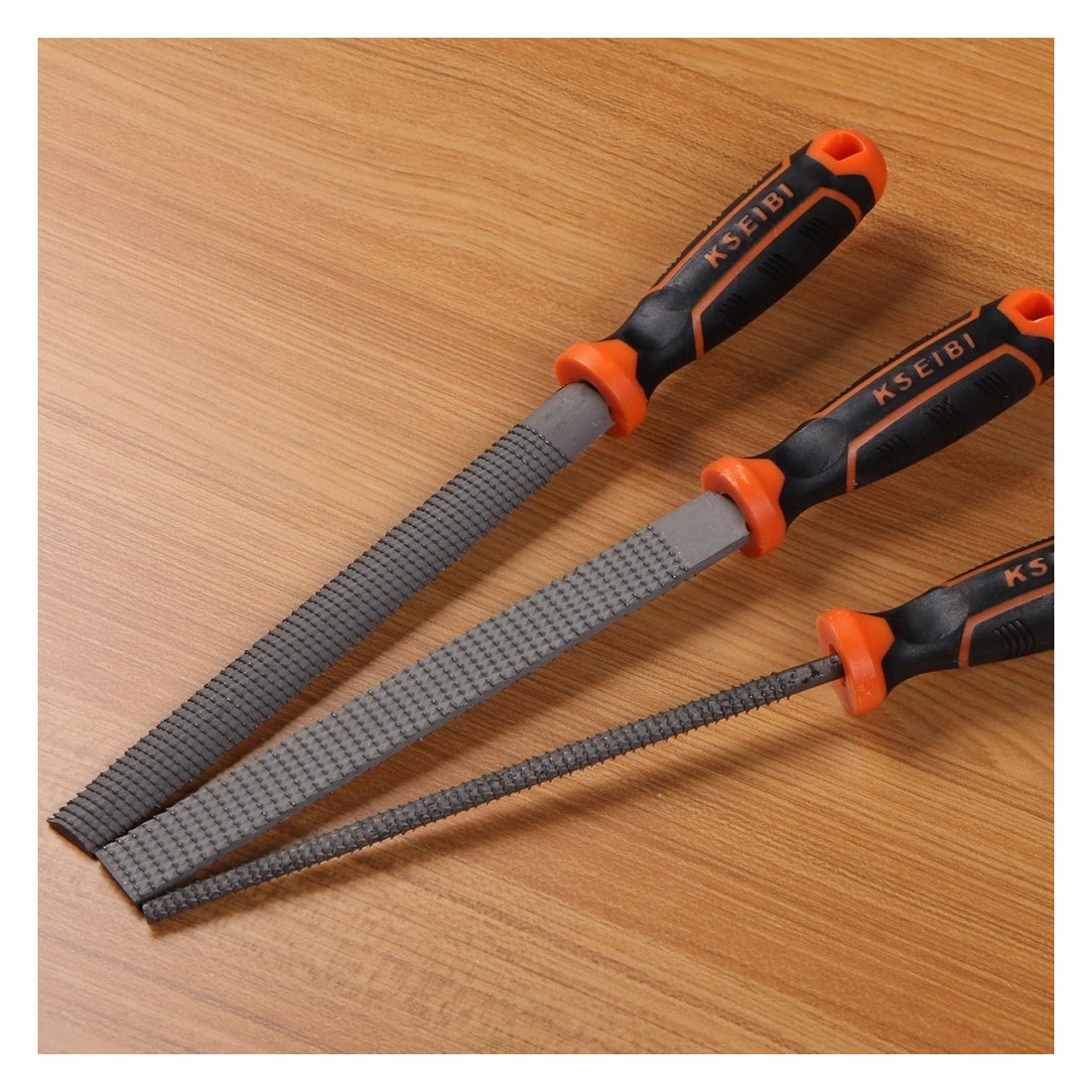KSEIBI 锉刀套装 3-PC. 8"200MM 是一套三件式锉刀工具,专为精细修整和形状塑造任务而设计。锉刀由优质工具钢制成,具备出色的耐用性和切削性能,可轻松应对木材、塑料或软金属等多种材料的加工需求。