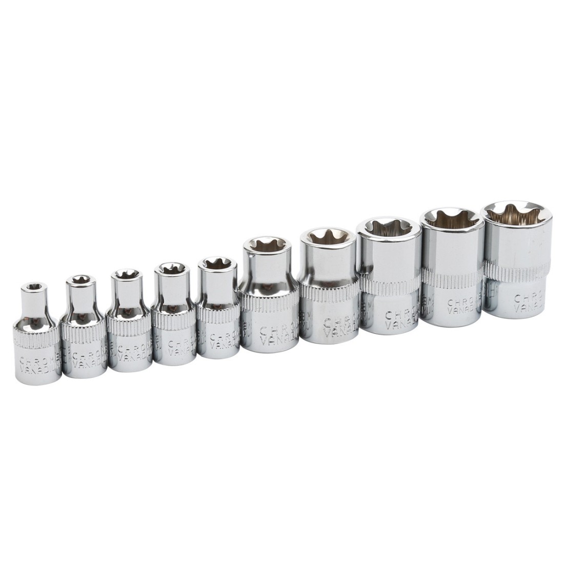 套筒采用铬钒钢精制而成,坚固耐用,能够承受高强度使用需求。表面镀铬处理不仅提升了防锈性能,还便于清洁和维护,延长工具的使用寿命。配套的塑料收纳架设计紧凑实用,确保每个套筒整齐归位,方便随时取用和存放。