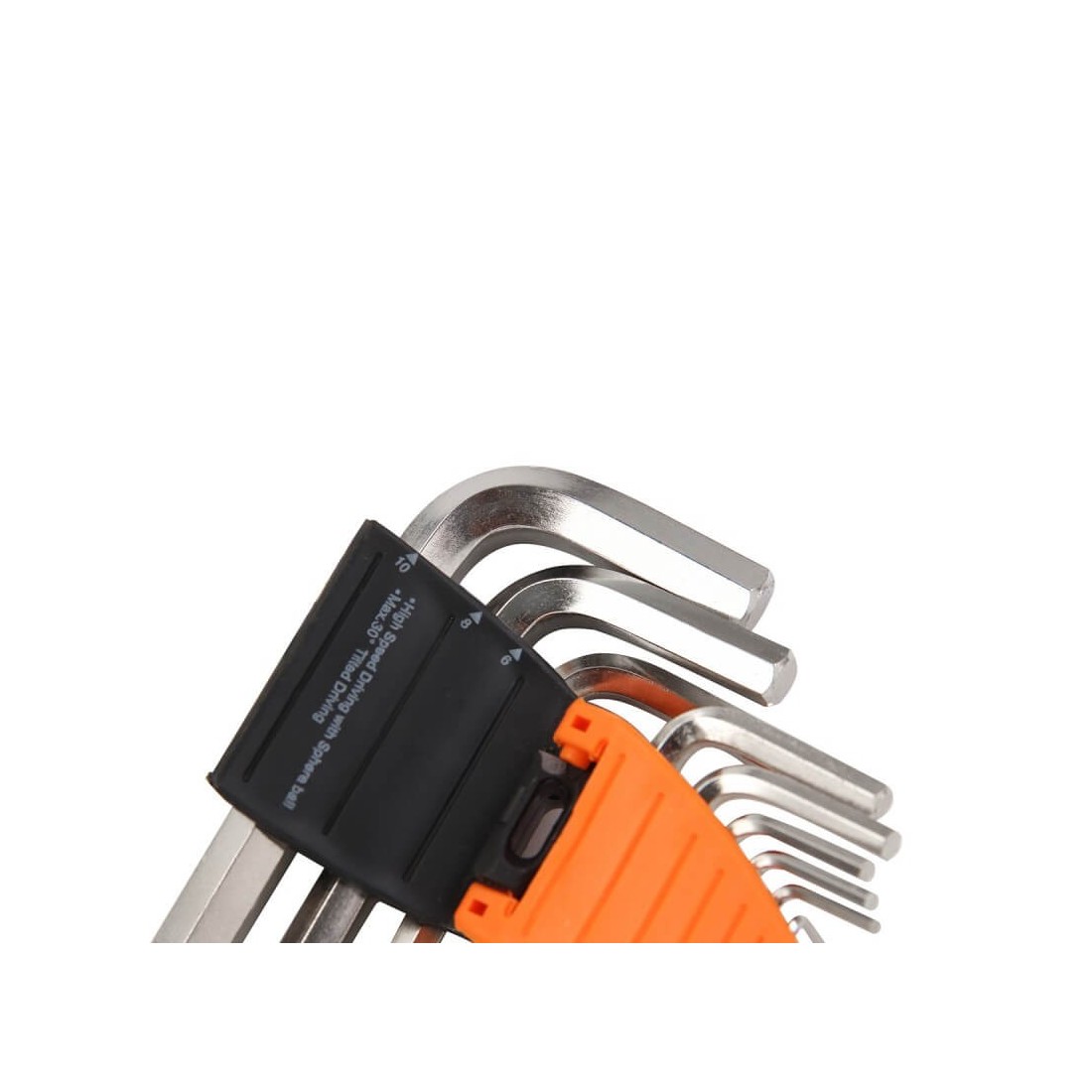 KSEIBI 短款内六角扳手套装 9件 (SAE) 是一款专为精确作业设计的实用工具,适合多种工业与日常维修场景。套装内包含9支不同规格的内六角扳手,满足标准SAE尺寸需求,能够轻松应对设备组装、机械维修以及精密调节等任务。