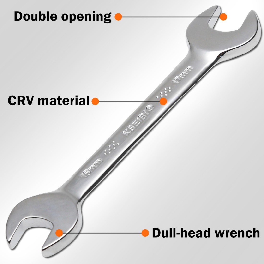KSEIBI双开口扳手套装(8件)是一款专为多种机械作业设计的实用工具组合,适用于维修、安装及装配等场景。这套扳手采用优质铬钒钢制造,具备出色的强度和耐用性,同时表面经过镜面抛光处理,能够有效防止腐蚀和磨损,保持长久使用效果。